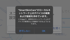 iOS14もしくはiPadOS14にてSmartSkinCareをご利用の場合、スコープとの初回接続時に下記ポップアップが表示され、スコープとの接続に失敗します。