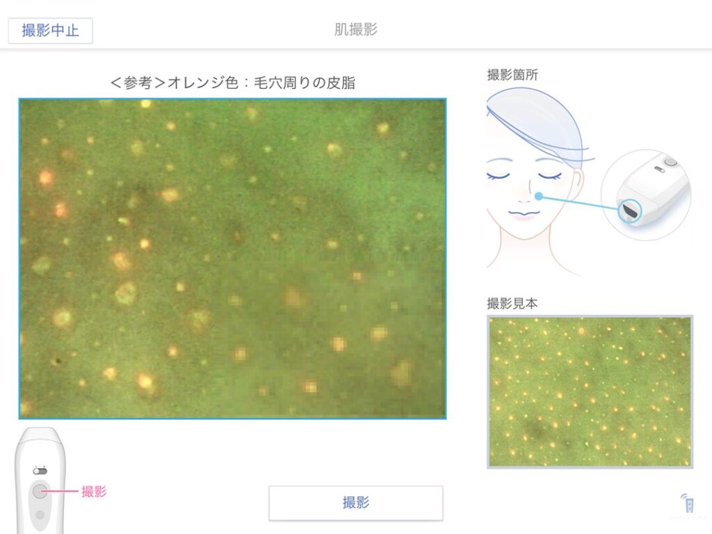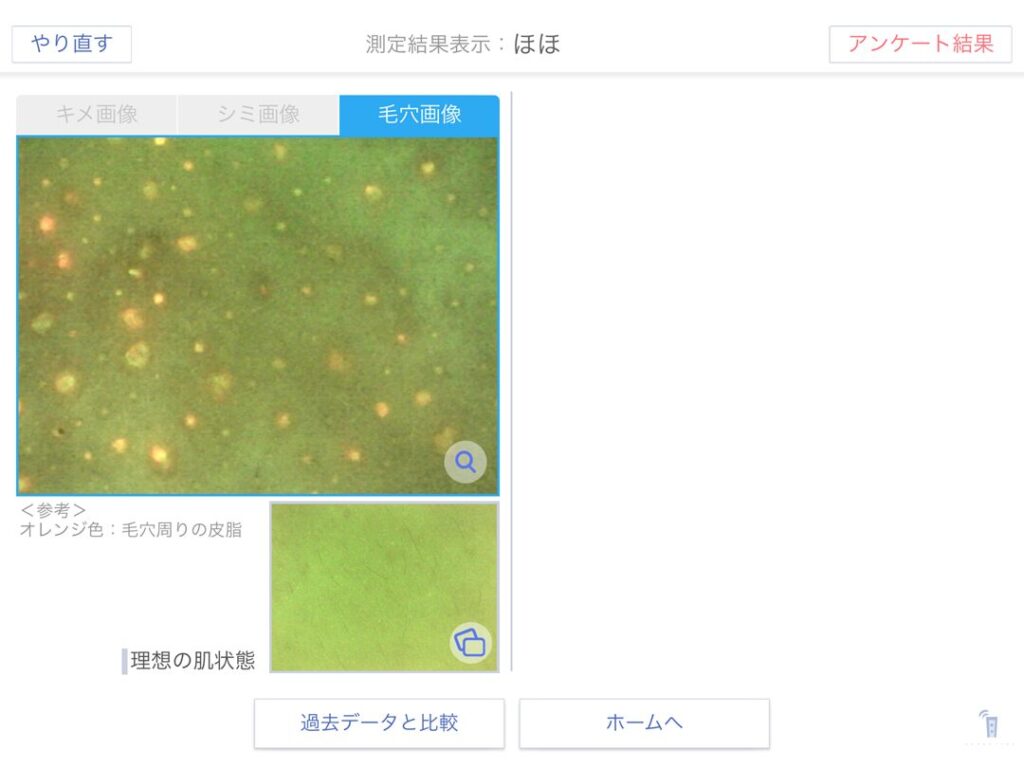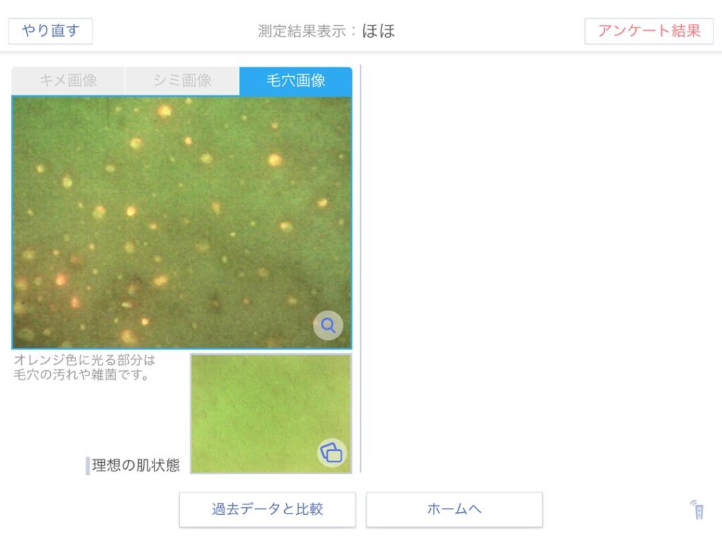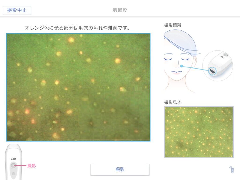 「オレンジ色に光る部分は毛穴の汚れや雑菌です。」
