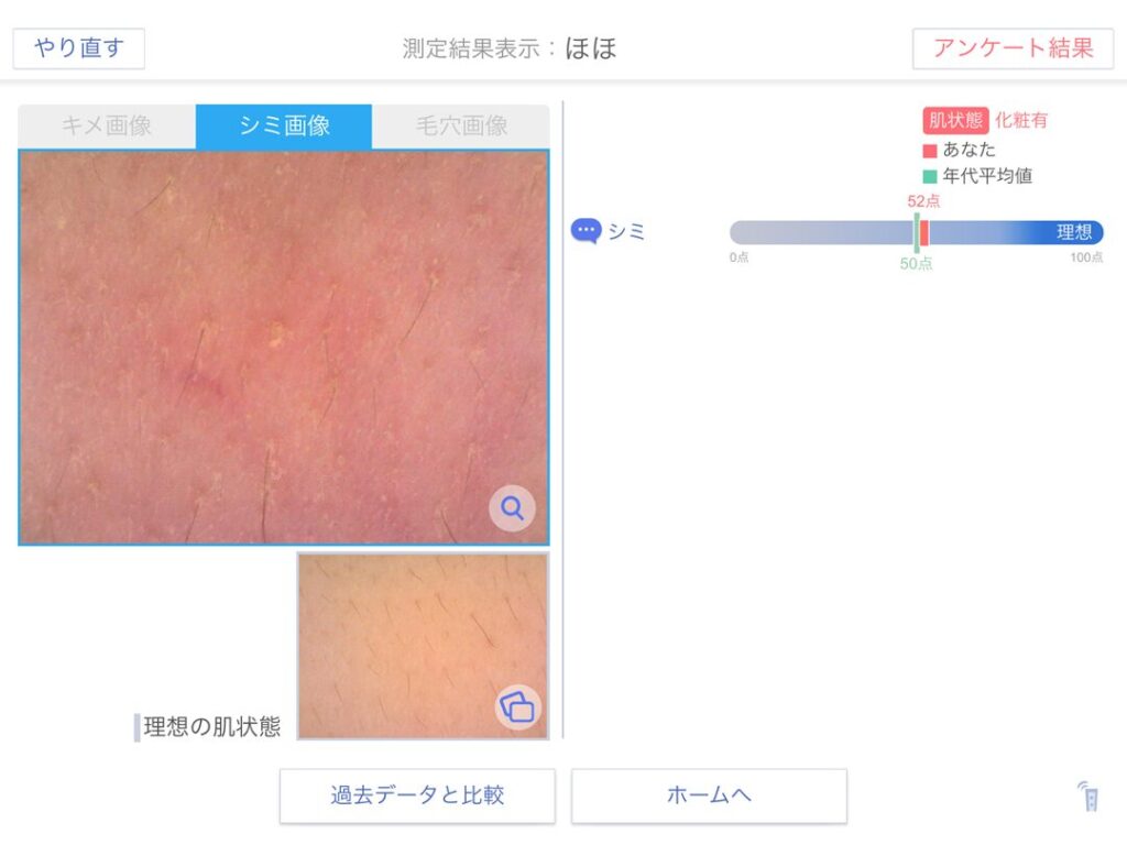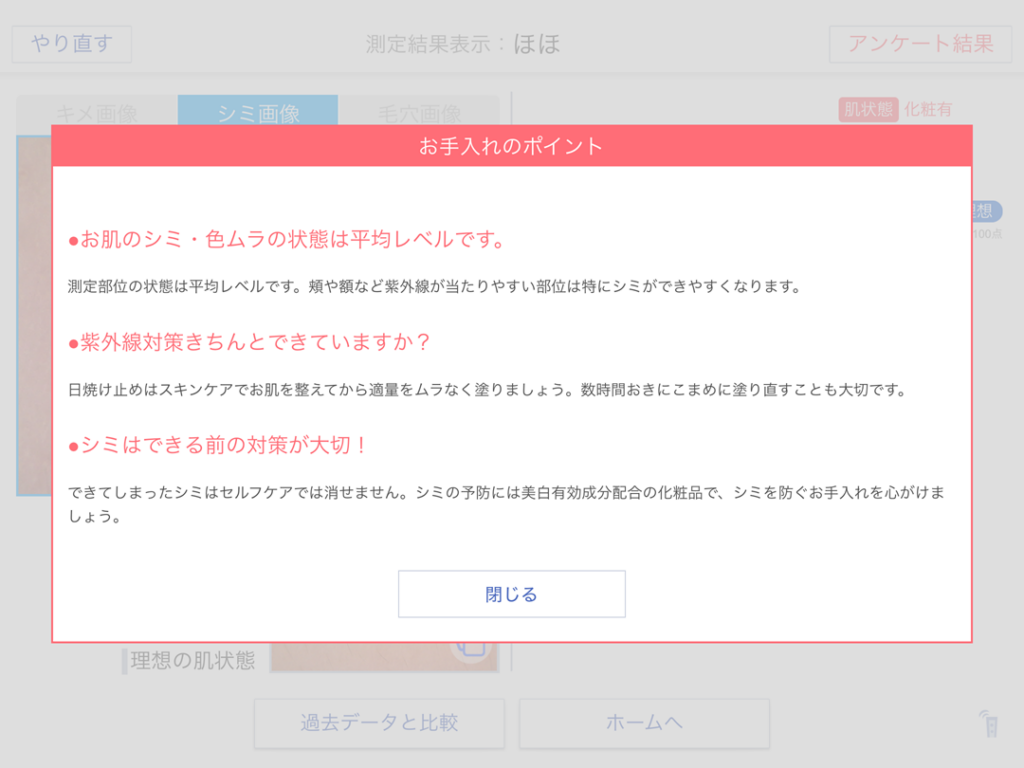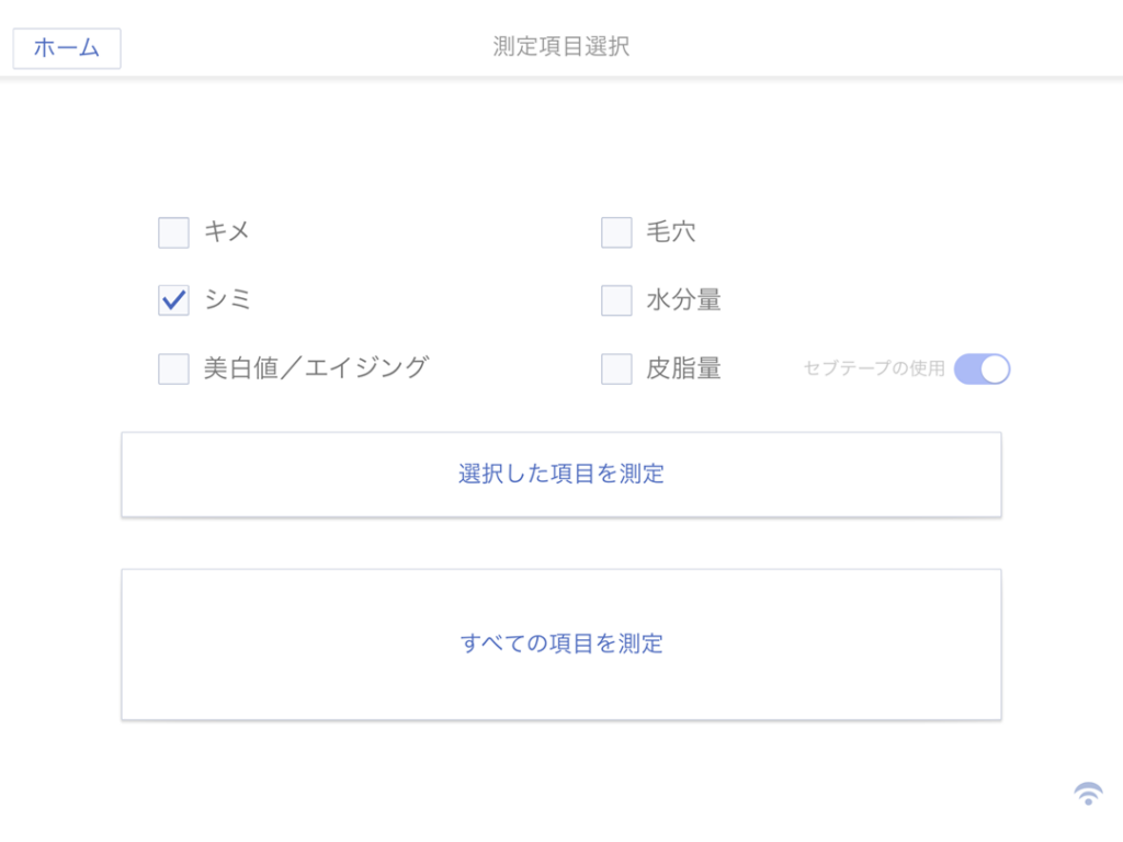 測定項目選択画面で「シミ」にチェックを入れて「選択した項目を測定」を選択します。