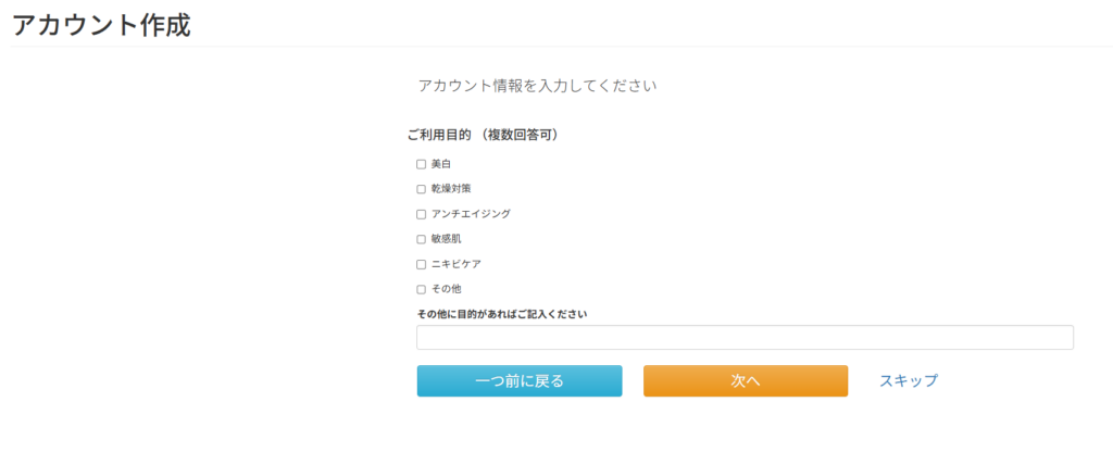 アンケートの入力を行います。入力を省略したい場合は「スキップ」を選択してください。