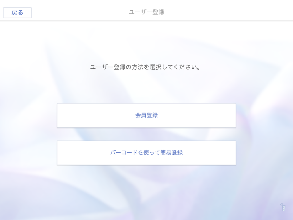 ユーザー登録画面にて、「バーコードを使って簡易登録」を選択します。