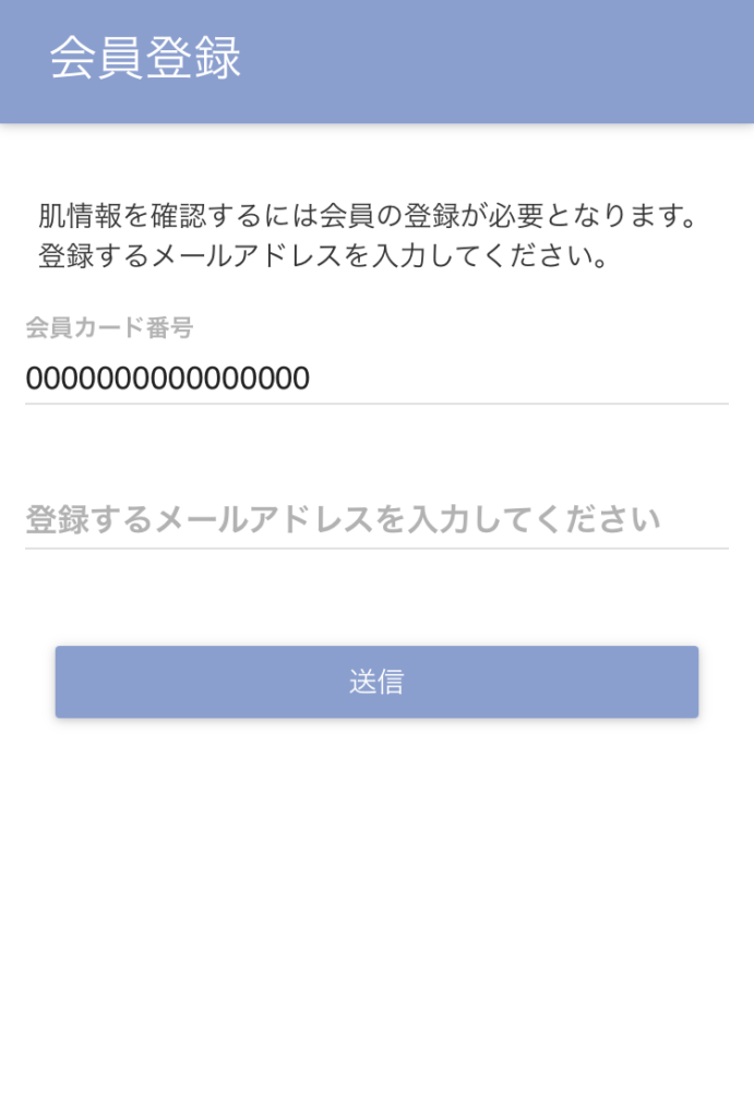 メールアドレス入力フォームが表示されますので、受信可能なメールアドレスを入力して「送信」ボタンを選択します。